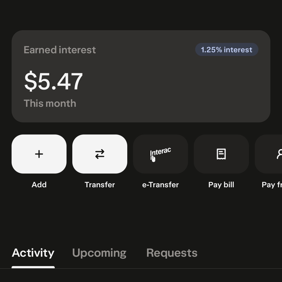 This means we will earn $7.71 in interest every single day we maintain a balance of $125,000 in our Wealthsimple Chequing account.