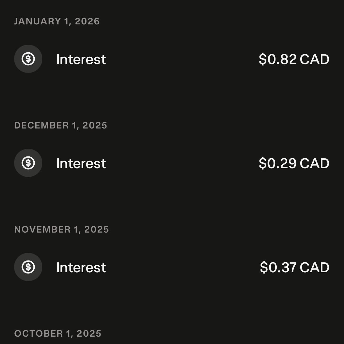 This means we will earn $0.10 in interest every single day we maintain a balance of $3,000 in our Wealthsimple Chequing account.